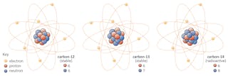 V přírodě se nacházejí tři izotopy uhlíku-uhlík-12, uhlík-13 a uhlík-14. Všechny tři mají šest protonů, ale jejich neutronová čísla – 6, 7 a 8-se liší. To znamená, že všechny tři izotopy mají různé atomové hmotnosti (nejtěžší je uhlík-14), ale sdílejí stejné atomové číslo (Z=6).