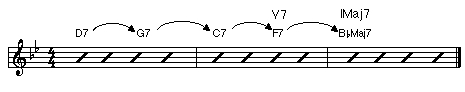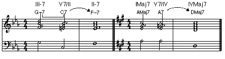 •이차 Dominants:지배적인 코드를 것으로 예상되는 해결을 위 아래로 완벽한 다섯 번째 다이아토닉 코드가 다른 나보다 예를 들어:V7/II(V7 의 II),V7/III(V7 의 III)