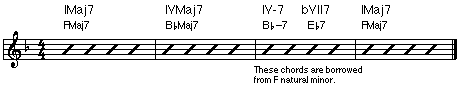 •모달 교환:병렬 모드에서 코드를 차용. 하모니 2 에서는 자연 마이너에서 코드를 빌려 병렬 메이저에서 사용합니다.