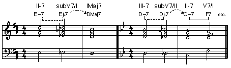 •대체 Dominants:으로도 알려진 고객을 대체하고,지배적인 일곱 번째 코드가 포함된 동일한 제공으로 지배적인 코드는 이들은 대체. (예. G7 및 Db7,Eb7 및 A7,B7 및 F7 등)그들의 예상 해상도는 사소한 초 아래로.