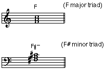 •트라이어드:코드가 포함된 세 정보,일반적으로 루트로 구성된 세 번째 위에 뿌리와 위의 다섯 번째 루트입니다.
